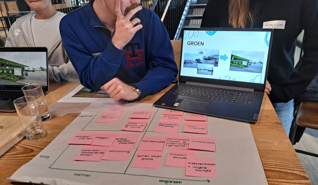 Studenten brainstormen over ideeën om bedrijventerrein Broekvelden-Groote Wetering toekomstbestendig te maken.